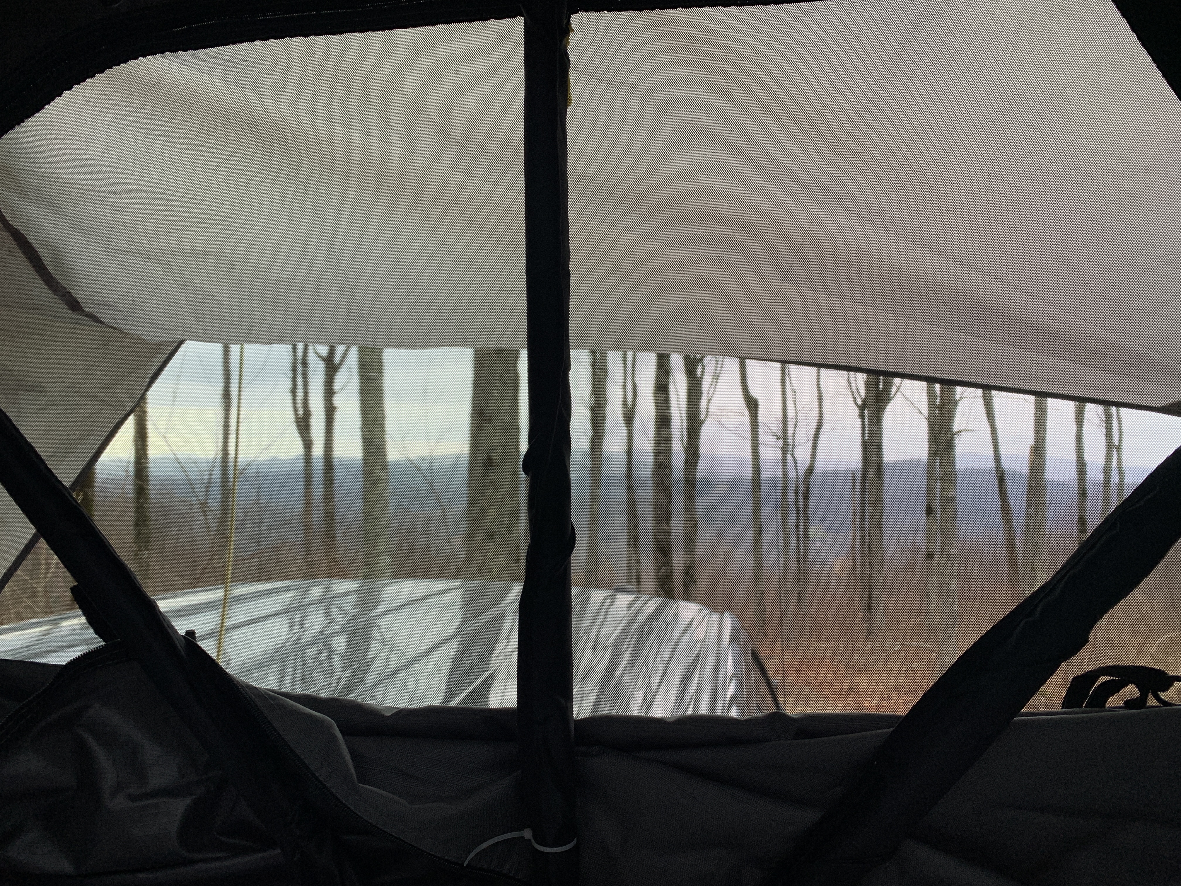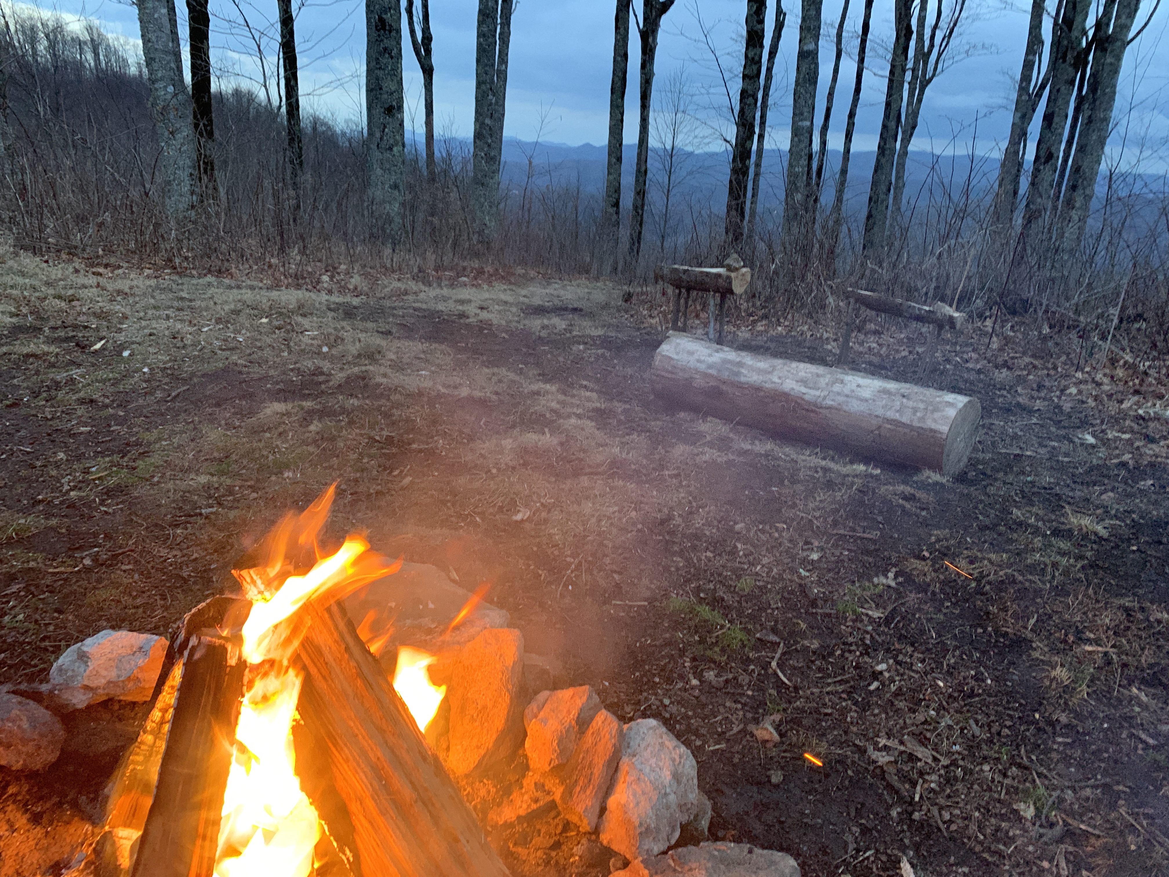 For New Year’s Eve, I requested to go camping on the side of a mountain so that we could watch the fireworks at midnight. Smalls as usual, was ready to meet my request and started researching more than a week ahead of time. Just when he thought he had it figured out, the weather forecast made it apparent that we would either be staying home or camping in the rain. Smalls went back to the drawing board and researched until he found somewhere with the lowest possible rain chances. We settled on Asheville, North Carolina. The morning of New Year’s Eve, we hopped in the car and headed north. I got on Hipcamp to find somewhere for us to stay. I stumbled upon an awesome campsite with almost 360° views just outside of Burnsville, North Carolina. It was not far from Hot Springs and Smalls has always wanted to go there. It’s the only part of the Appalachian trail that actually goes through a city. The campsite was amazing! It required four-wheel-drive to get there and we drove through a tunnel and next to a private runway in order to access our campsite. The only thing that would have made it better was if we were the only ones there. The campsite allowed for two spots and the second spot, which had the best views, had already been reserved. We decided to drive straight to camp and take our time setting up and fixing dinner. It was absolutely gorgeous. We got to take our time setting up with sunlight which can be rare for us. It was windy and cool so Smalls set up a tarp to give us some shelter. We had a quick and easy dinner then enjoyed ourselves by the campfire.